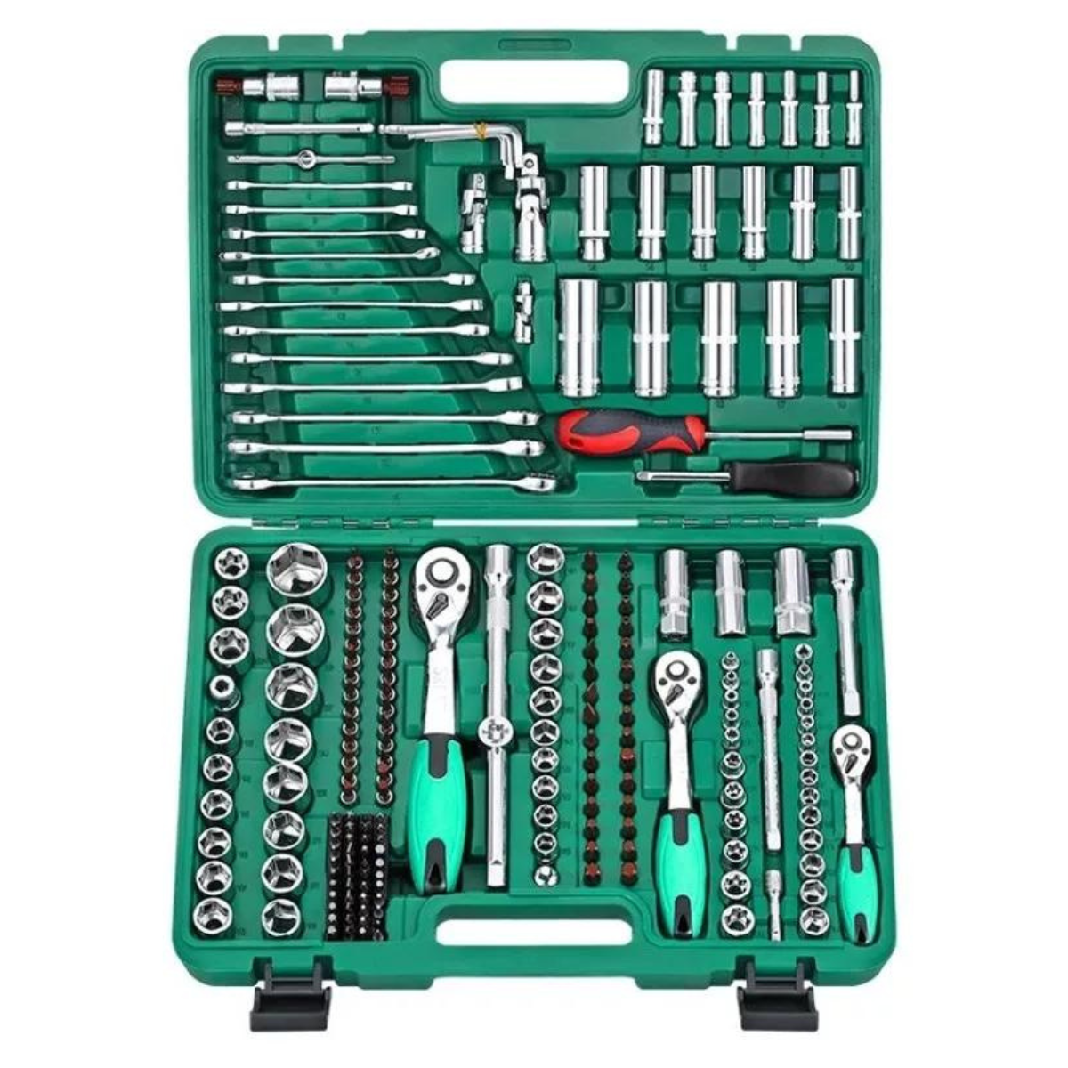 Las reparaciones de auto, moto o maquinaria no tienen que frustrarte. Este set profesional de 216 piezas incluye todos los dados, llaves y extensiones que necesitas en medidas métricas e imperiales. Acero cromo vanadio de alta resistencia para uso profesional o del hogar.